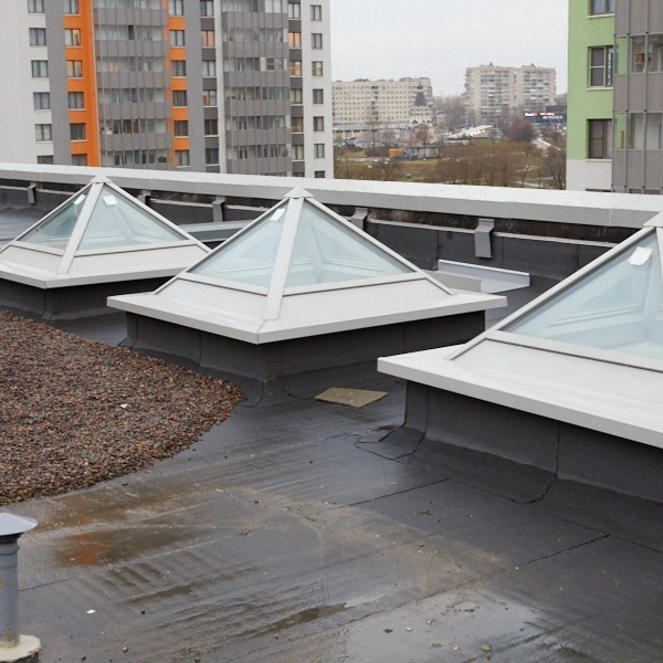 Устанавливаться конструкции могут на любые виды кровель, включая наклонные крыши (угол наклона кровли может быть абсолютно любым). При этом зенитные фонари могут иметь разные формы: